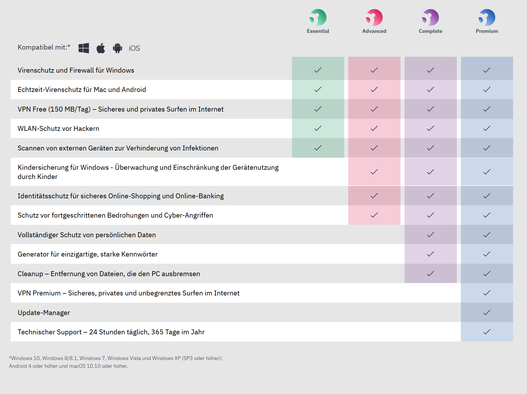 | Enthaltene Anwendungen: | Firewall Sicheres Browsen Virenschutz VPN Wi-Fi security |